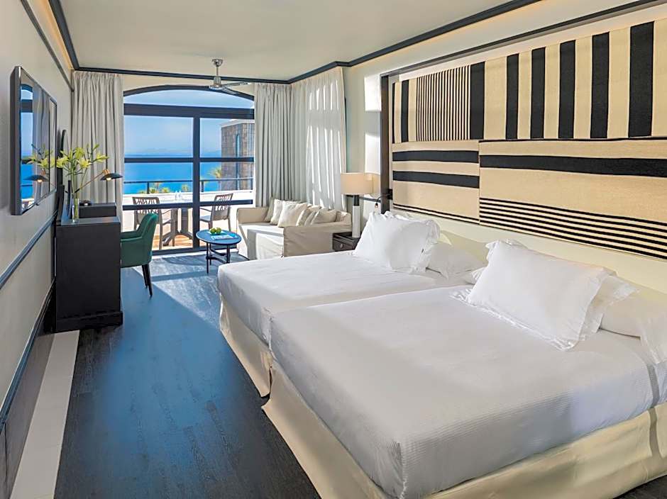 The spacious twin/double room offers air conditioning, a mini-bar, a terrace with sea views as well as a private bathroom featuring a bath.